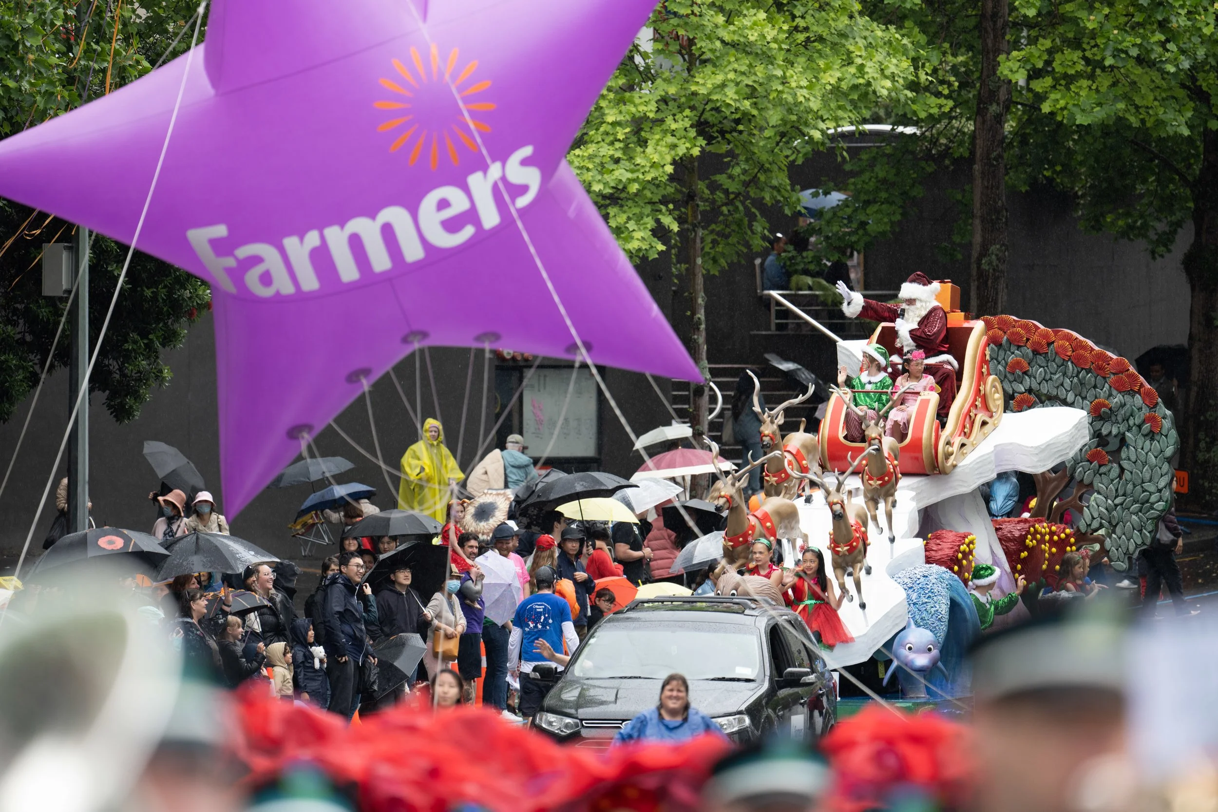 Despite the weather, spirits were high today as Auckland got to celebrate Christmas once more as the Farmers Santa Parade made its joyous return.