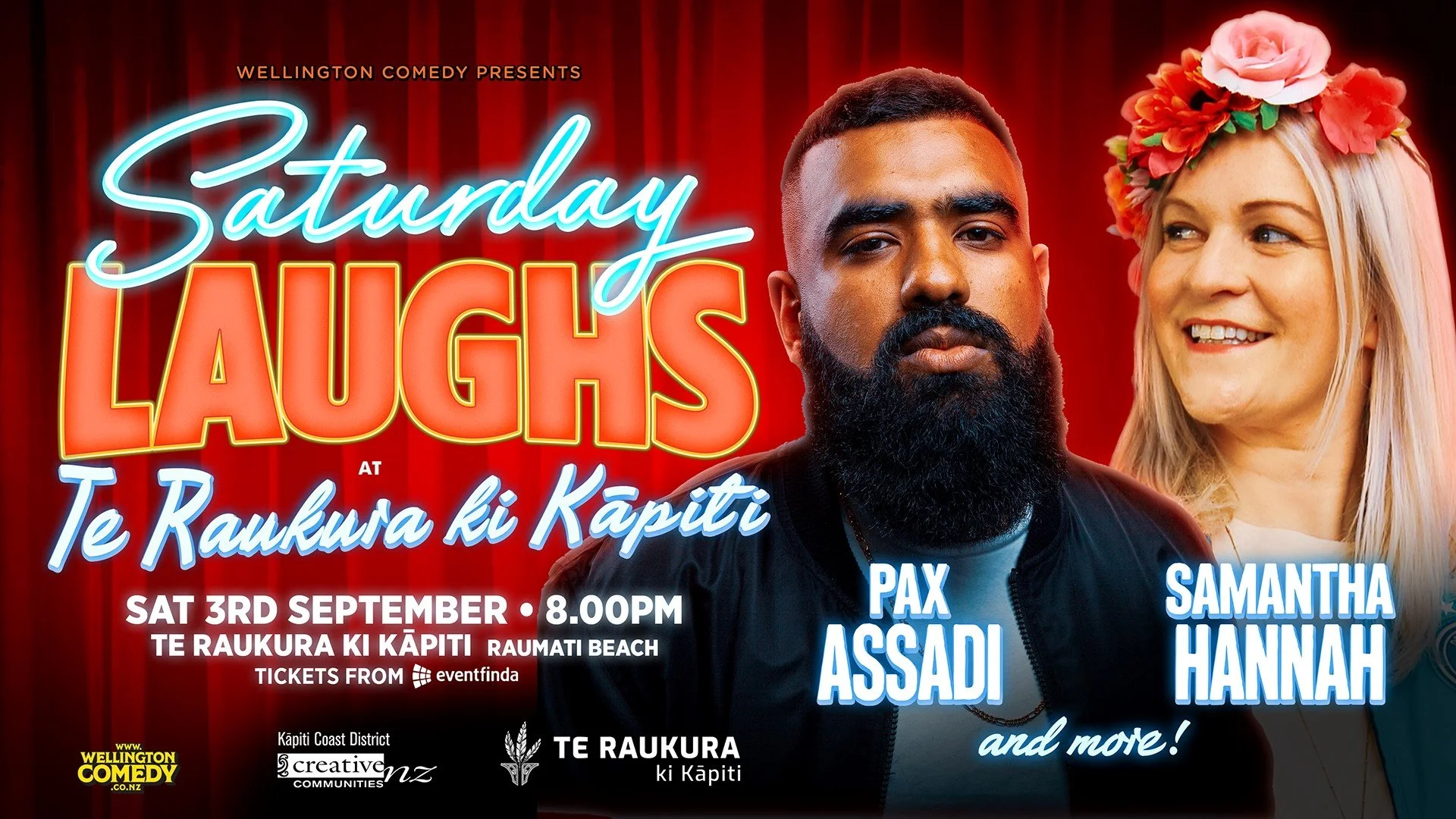 Saturday Laughs is back with another two hour comedy showcase! On Saturday 3rd September Coastlands Theatre in Kāpiti will come to life with laughter with this outstanding line-up of comedians from around the world.