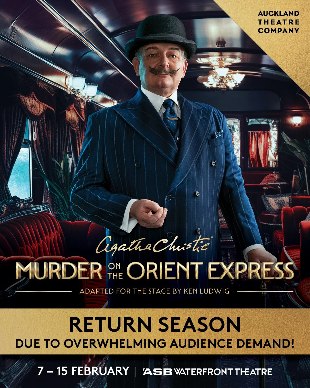 Now, due to overwhelming demand, audiences will have a second chance to climb aboard the world’s most infamous train. The return season of Agatha Christie’s Murder on the Orient Express, adapted for the stage by Ken Ludwig, will play at the ASB Waterfront Theatre from 7 – 15 February 2026.
