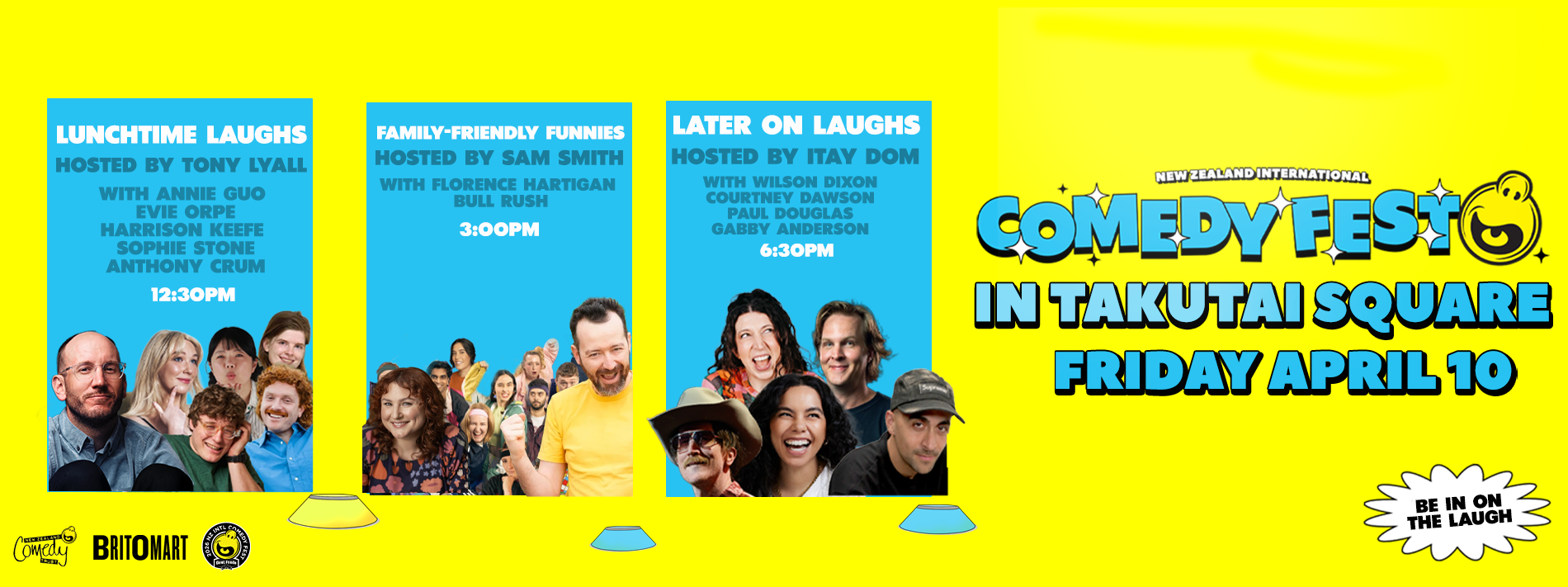 Comedy Fest in Takutai Square is a partnership between NZ Comedy Trust and Britomart, proudly supported by Auckland Council Events and the City Centre Targeted Rate.