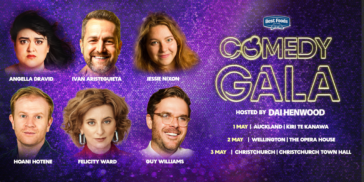 The New Zealand Comedy Trust is stoked to announce the latest line-up drop for the 2026 Best Foods Comedy Gala: Felicity Ward (Aus), Guy Williams, Ivan Aristeguieta (Aus & Venezuela), Angella Dravid, Hoani Hotene and Jessie Nixon (UK). The biggest night in Aotearoa comedy, hosted by Dai Henwood ONZM, heads to Auckland on 1 May, Wellington on 2 May and makes a long-awaited return to Christchurch on 3 May.